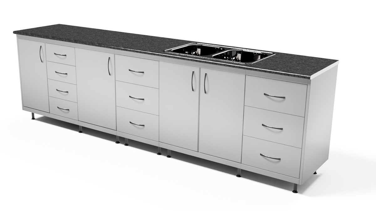 - Возможность выбора материала столешницы: ЛДСП 28 мм, акрил, компакт-ламинат.