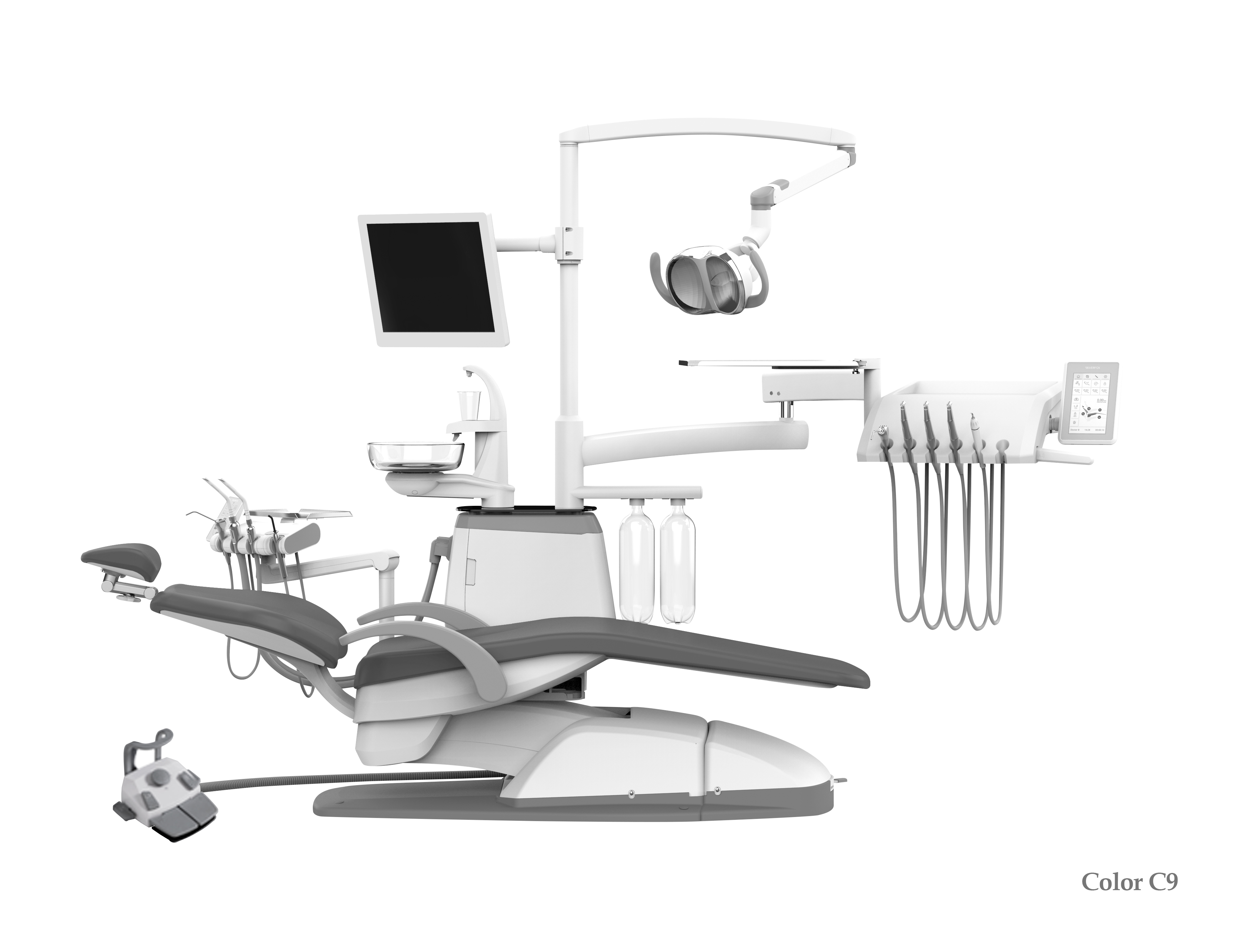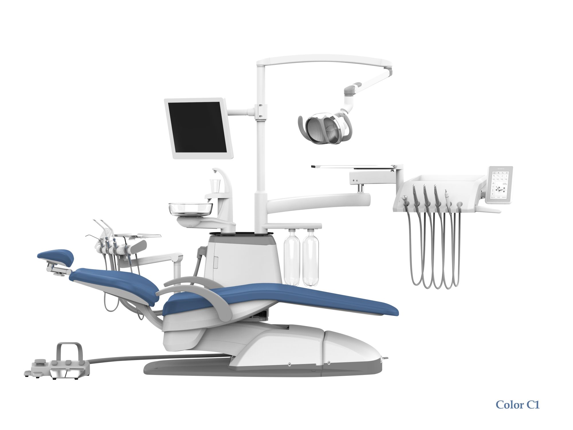 - Управление светильником осуществляется с помощью сенсорной панели на блоке врача, блоке ассистента и педали ножного управления