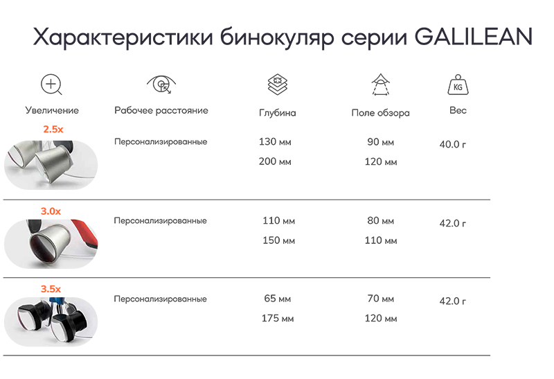 Бинокуляры GALILEAN обеспечивают чистую оптическую систему высокой чёткости, которая обеспечивает широкое поле зрения, исключительную глубину фокусировки и непревзойдённую чёткость изображения. Благодаря минимальному расстоянию TTL, бинокуляры отличаются лёгким и сбалансированным дизайном, обеспечивающим оптимальный комфорт и точность.