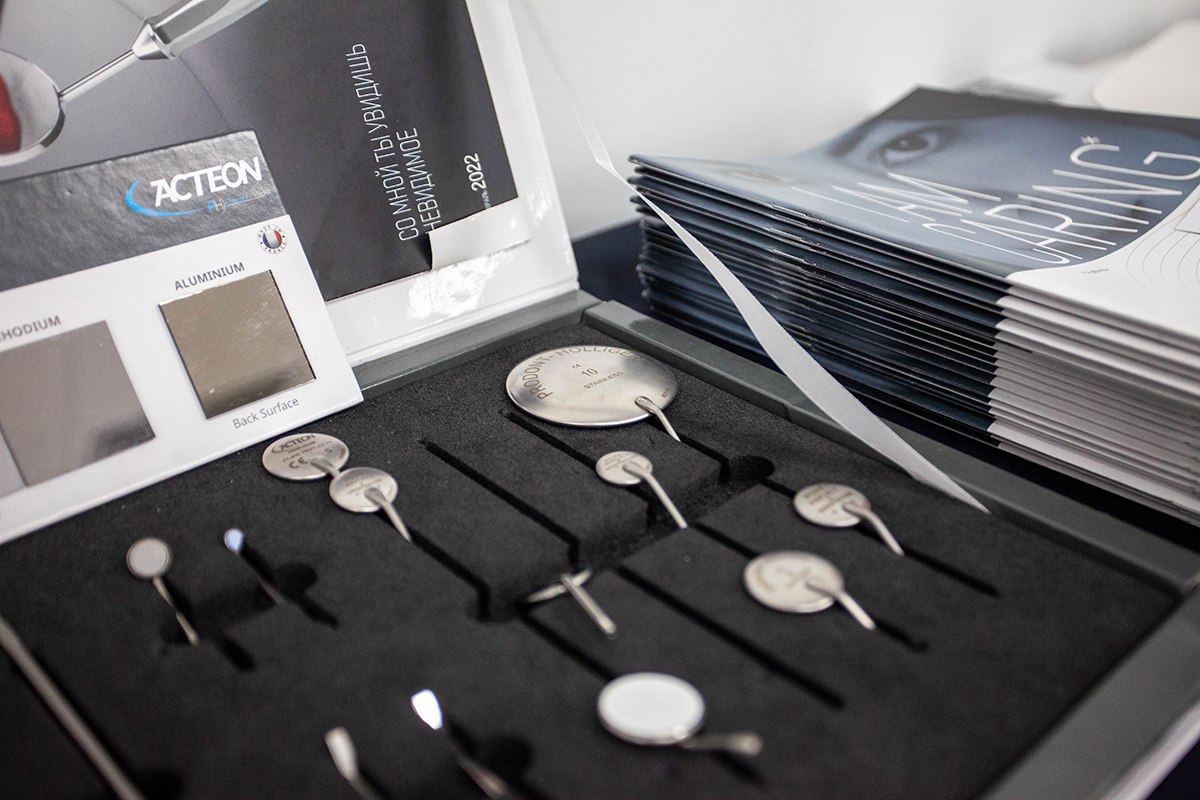 В борьбе за каждый зуб врачи проводят высокоточную компьютерную и микроскопическую диагностику, работая под увеличением дентального микроскопа. Незаменимым помощником в эффективном эндодонтическом перелечивании является современное стоматологическое оборудование от компании GREEN DENT: высококачественные насадки и зеркала, а также ультразвуковой скалер Acteon. Всё это уже в нашем фотоотчёте.