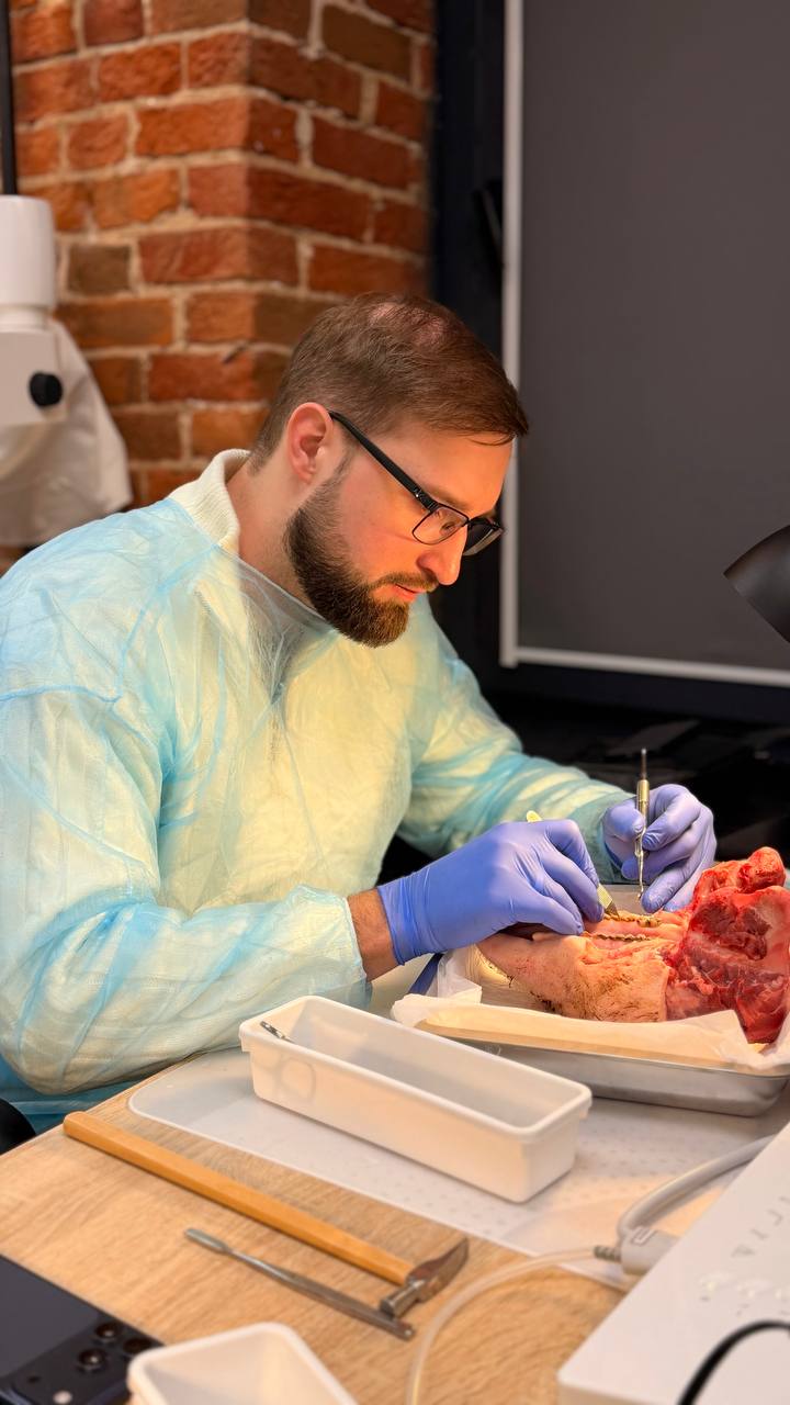 30 и 31 января его участники научились делать это с помощью метода профессора Кюри и узнали, как проводить открытый синус-лифтинг, отработав каждый этап на практике: от забора блока до ушивания раны.