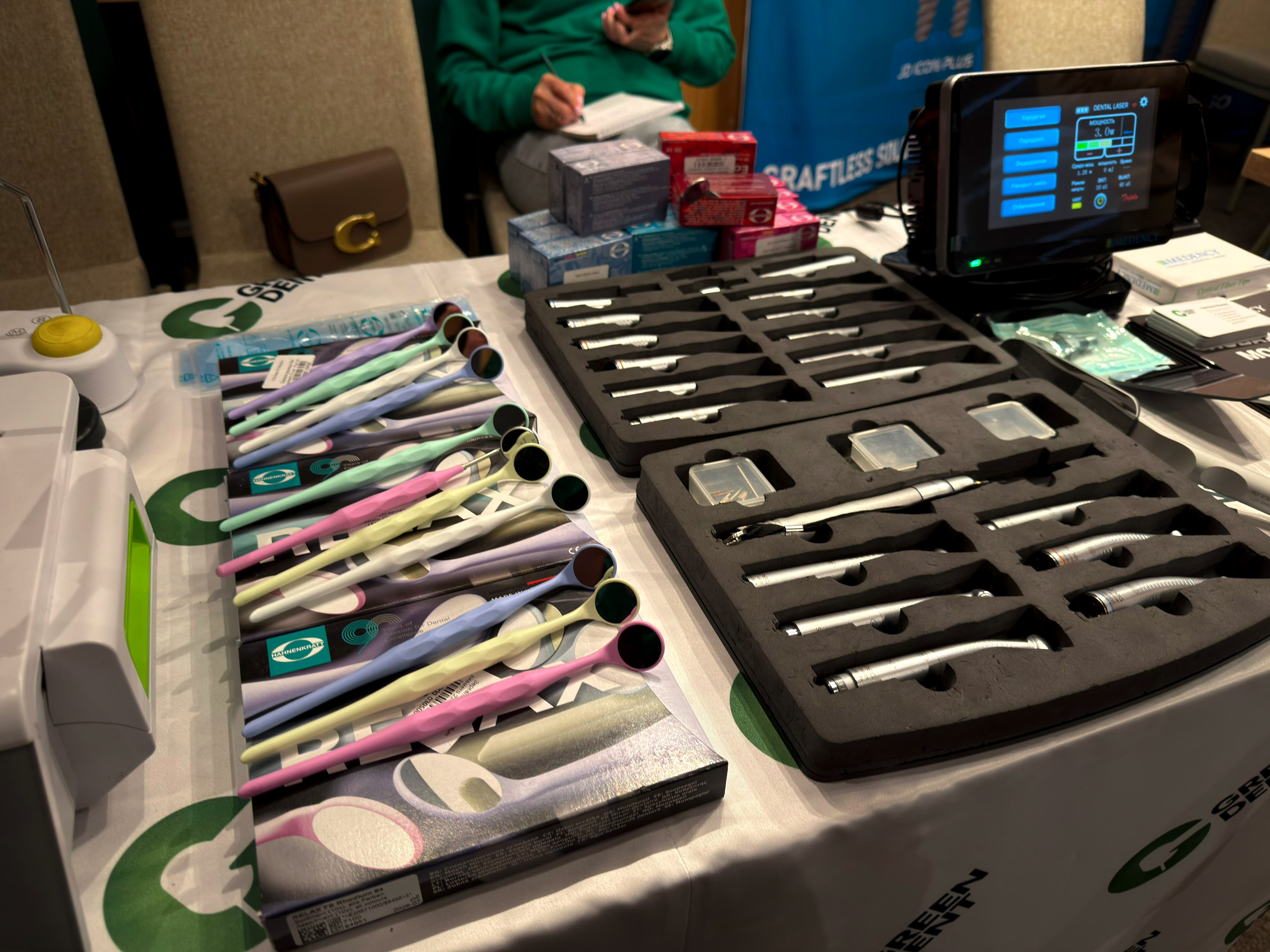 Его и многое другое инновационное стоматологическое оборудование на курс привезли специалисты компании GREEN DENT. Мы были рады встречи с каждым специалистом, спасибо за ваш интерес к нашей продукции, представленной на стенде: зеркала, бинокуляры, Piezomed, Implantmed, Piezomed plus и лазеры Medency.